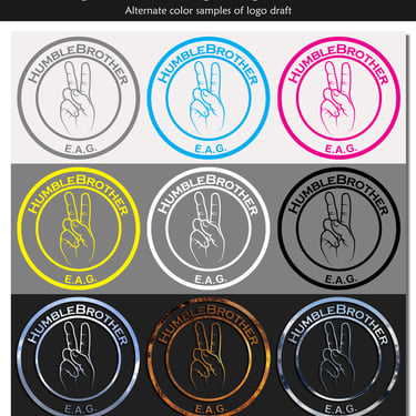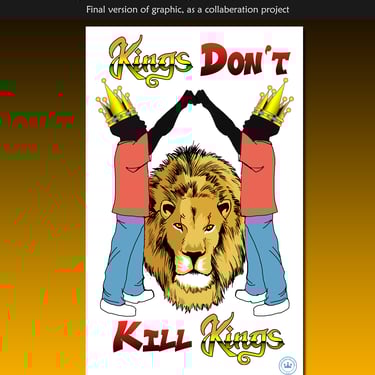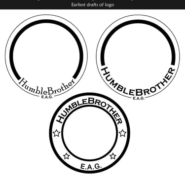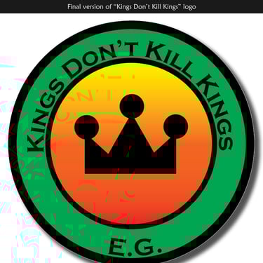 In relation to the apparel graphic of the same name and contracted from the same client: He wanted to make the moniker "Kings Don't Kill Kings" into a brand for his plans regarding graphic apparel. When he contract me to make this logo, the original name was to be "Humble Brother", as depicted by the early drafts, symbolized with the "peace" sign. While not depicted, originally the client wanted the "power fist" that has been used in many types of imagery, at the time ( i.e. social justice). I advised against this, as the symbolism of the fist goes against the idea of peace he wanted to promote, as it often symbolizes "force".