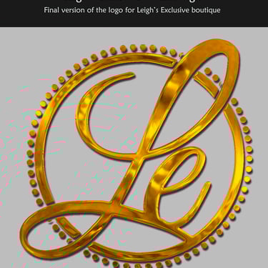 I didn't get a clean file of her original logo I could work with, nor did I have the font files to match the "L" and "E" to achieve the final result depicted here, so I essentially had to make logo from scratch, tracing over the original image. Fortunately, this allowed me to apply the gold chrome effect which she loved.