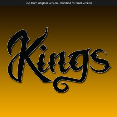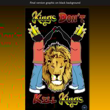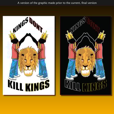 Aside from providing the text, I took it upon myself to clean up the illustration, added self-shadows to the "twins" as well as a chrome-like effect to the crowns. The separate styling of the word "king" in the revised version, was based on a reference provided by the client. The entire concept was inspired as a counter message against the general "black on black" violence that typically occurs in housing projects and low-income neighborhoods.