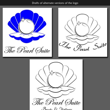 The colors she wanted were white, blue and gold to be used in some fashion. After a bit of experimenting with drafts, it was ultimately decided to use blue for the shell, white for the pearl and the "sparkle" on the pearl to be gold. The script style font was chosen to complement the logo and give the overall logo a sense of luxury.