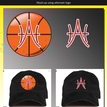 The client did approve of that and the pseudo-chrome gloss effect. He also wanted to see, how it would look on a cap or a hoodie, so I created mock-ups. The client also wanted an alternate logo, using just the "A" and "H", something that resembles the lines of a basketball. I achieved that, after a bit of experimentation. That alternate logo would serve to be used on caps, as opposed to the main logo. Mock-ups were also made for it.