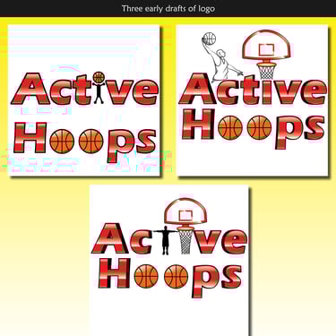 The client for this design wanted a logo for his basketball gym. It began with the idea of having a depiction of a basketball player, mid-dunk incorporated in the logo, with the alternative of having a little of a "man" with a basketball for a head. Despite the changes, having the lettering with red and white remained consistent. In one of the early drafts, I experimented with giving the text a slight perspective look. I had to use a black outline for that effect to work correctly.